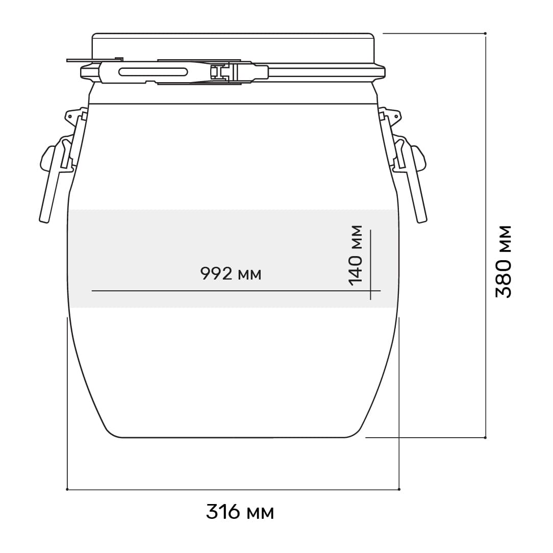 • Герметичность: крышка с хомутом предотвращает протечки и сохраняет содержимое.