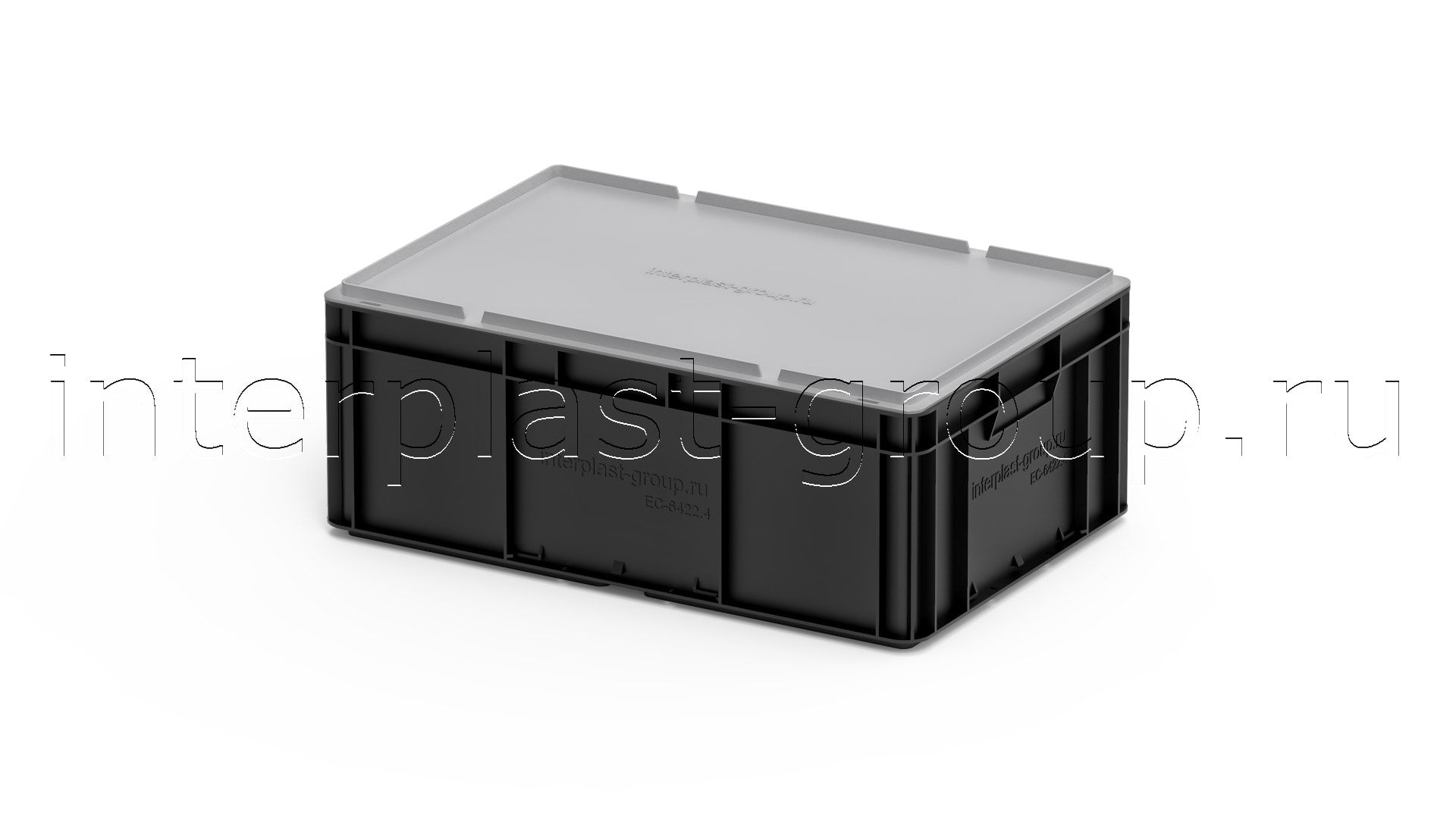 Евроконтейнер закрытые ручки/усиленное дно (черный), 600x400x220 мм