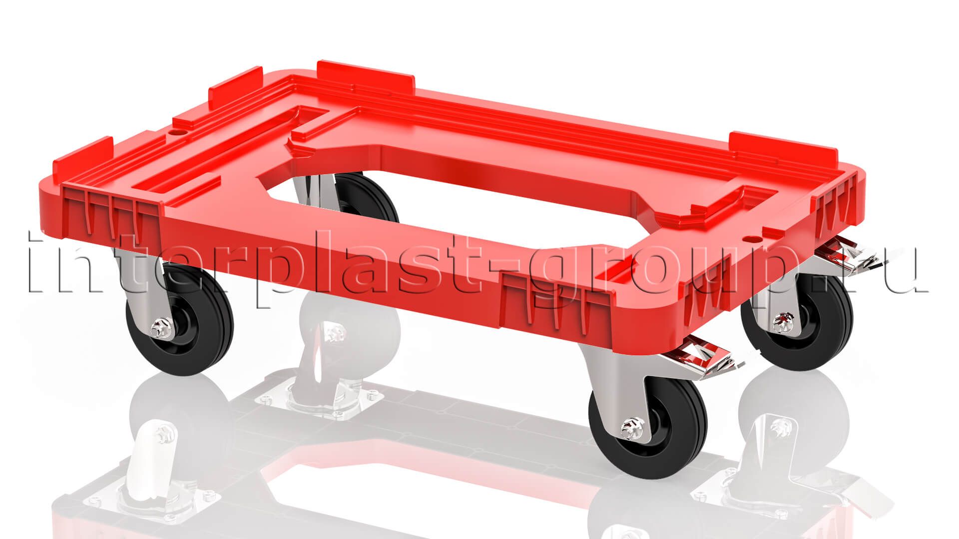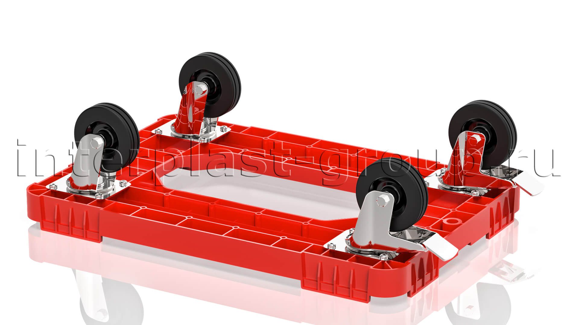 Тележка пластиковая с отверстием 2 колеса с тормозом красная в Йошкар-Оле