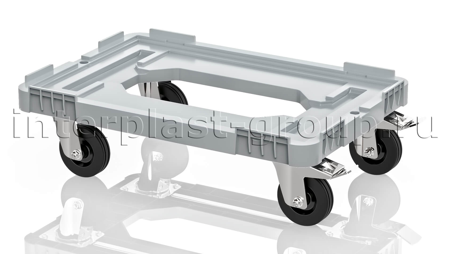 Тележка пластиковая с отверстием 2 колеса с тормозом усиленная серая в Йошкар-Оле