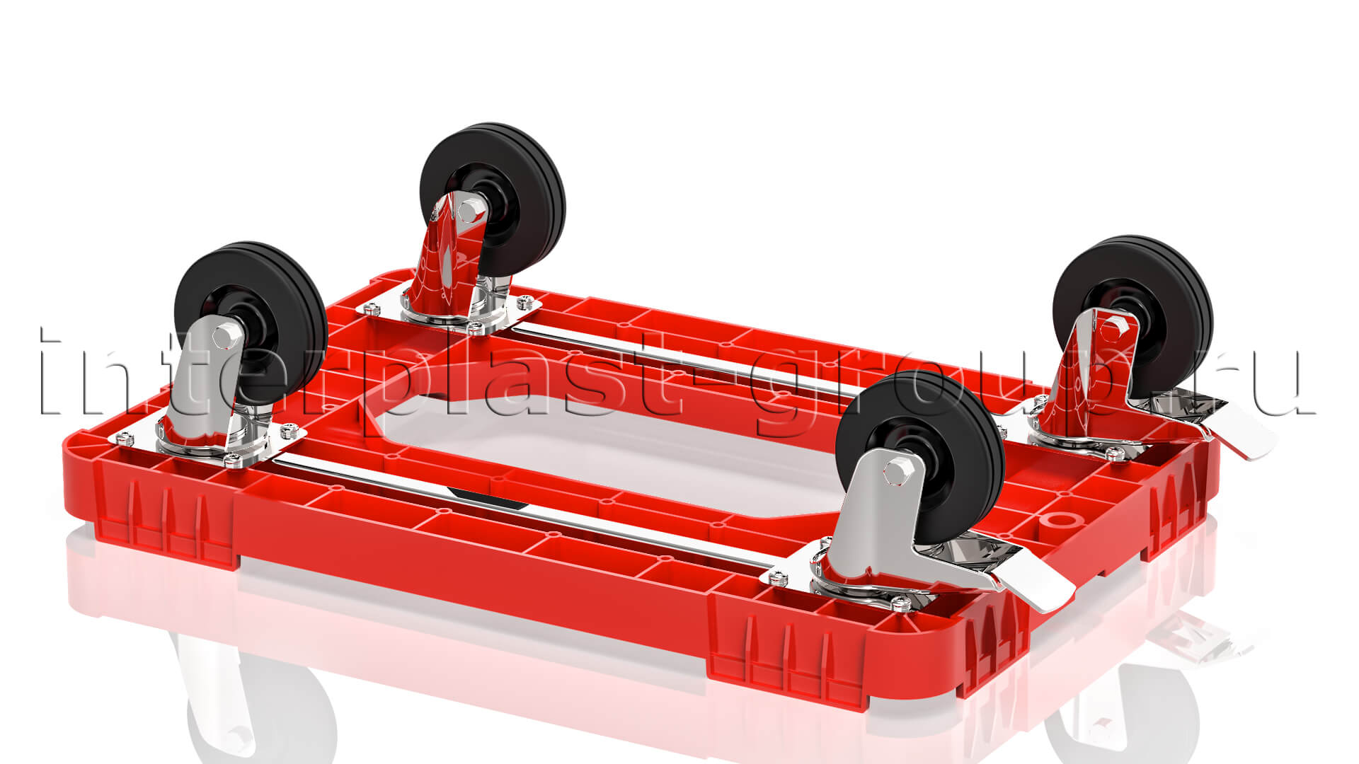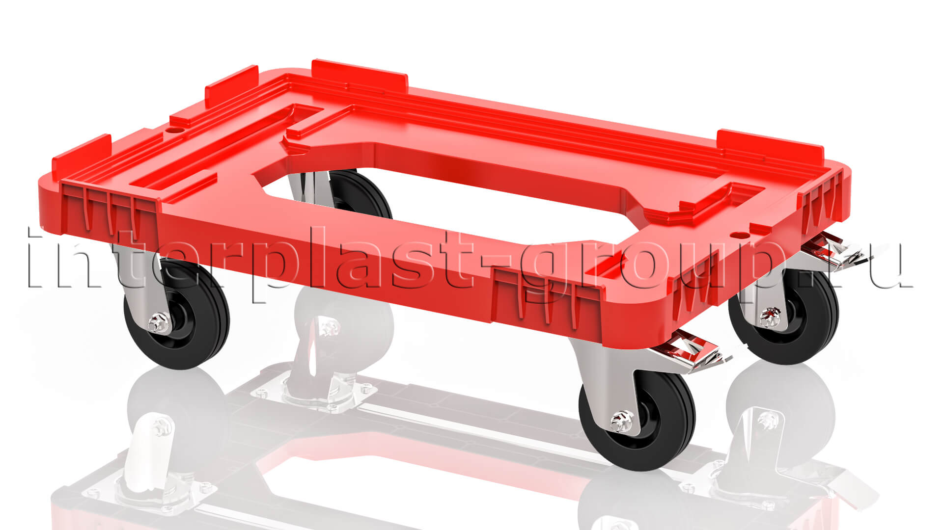 Тележка пластиковая с отверстием 2 колеса с тормозом усиленная красная в Йошкар-Оле