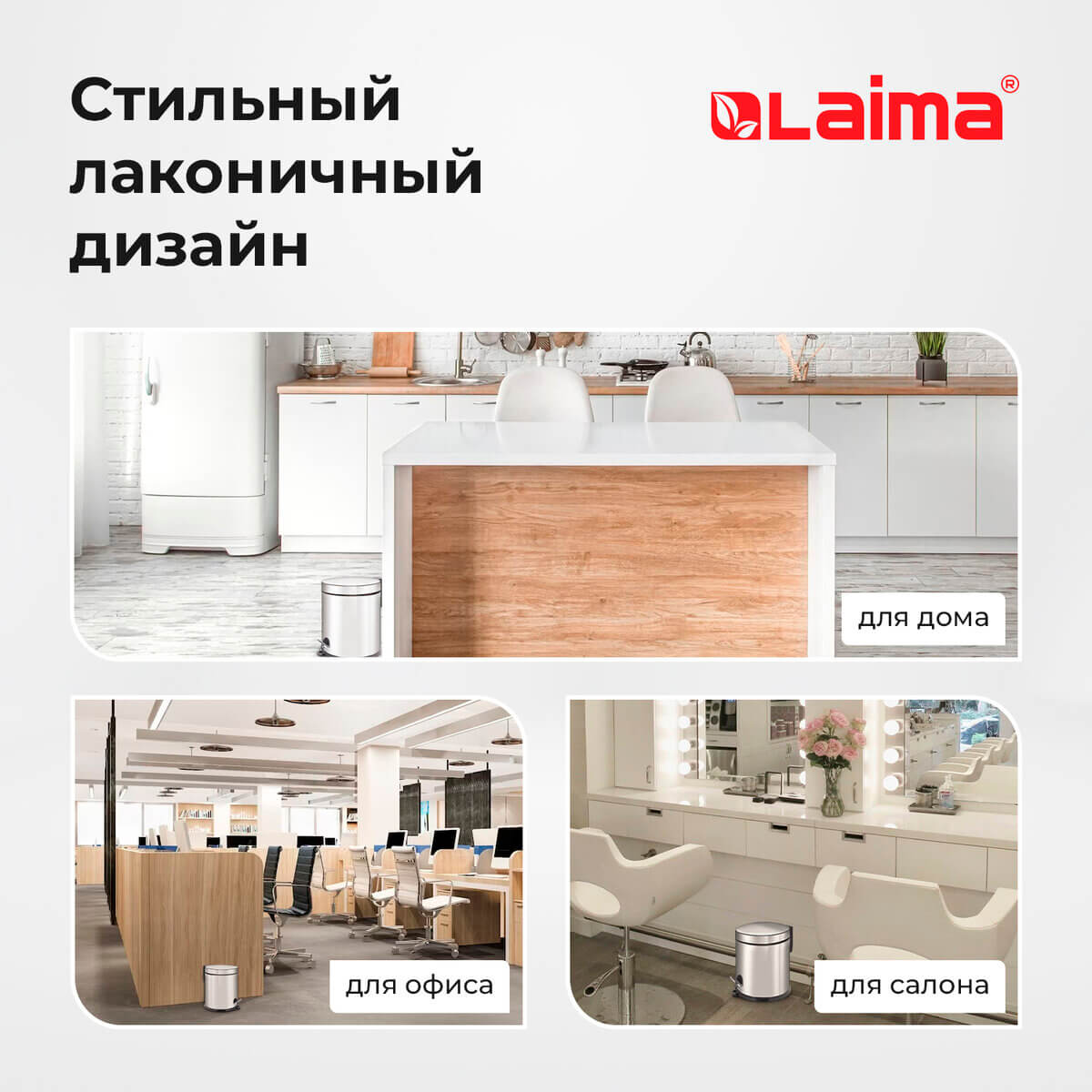 Ведро-контейнер для мусора урна с педалью LAIMA Classic Plus, 5 л, зеркальное
