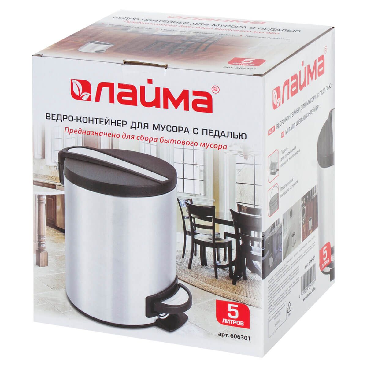 Ведро-контейнер для мусора (урна) с педалью LAIMA Modern, 5 л, матовое, нержавеющая сталь