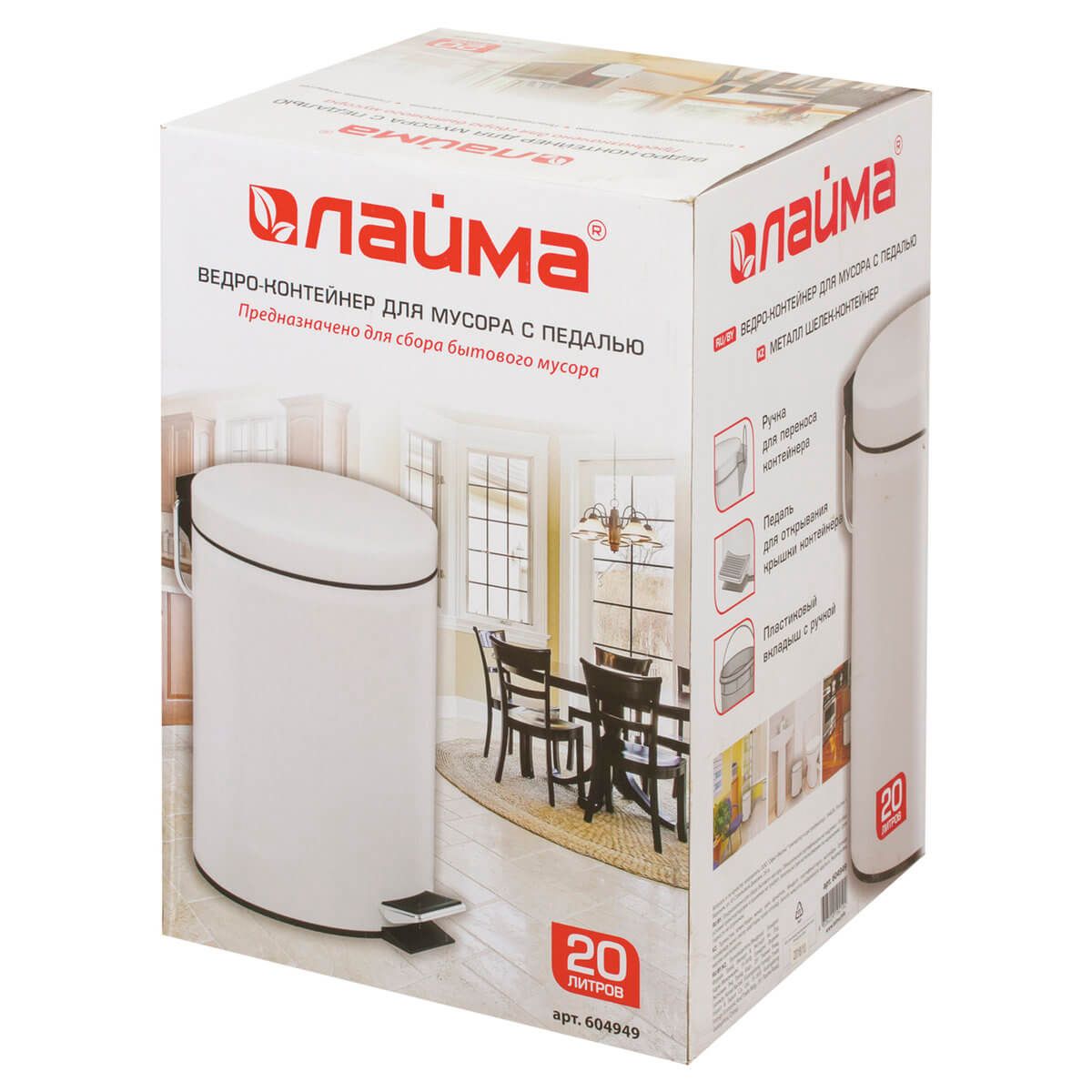 С вместительными 20 литрами, оно прекрасно справляется с повышенной проходимостью. Оснащено удобной педалью для открытия, а плотно прилегающая крышка не допускает распространение неприятных запахов.