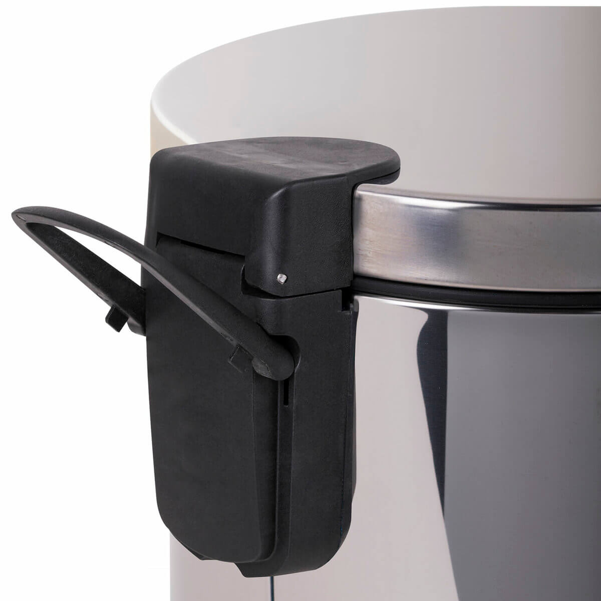 Внутреннее съемное пластиковое ведро оснащено удобной рукояткой для легкости извлечения мусора. Ведро изготовлено из нержавеющей стали с антикоррозийным покрытием, что обеспечивает долгий срок службы. Антискользящее основание обеспечивает устойчивость.