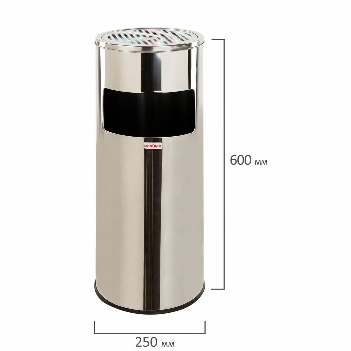 Урна с пепельницей 27 л, нержавеющая сталь, зеркальная, LAIMA PROFESSIONAL