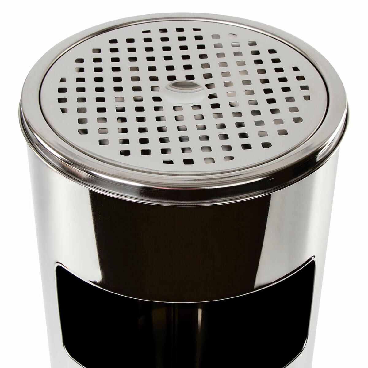 Эта урна изготовлена из зеркальной нержавеющей стали, что придает ей не только надежность, но и изысканный внешний вид. С её вместительностью в 27 литров она готова принимать на себя ответственность за поддержание чистоты как внутри помещения, так и на входе в здание.